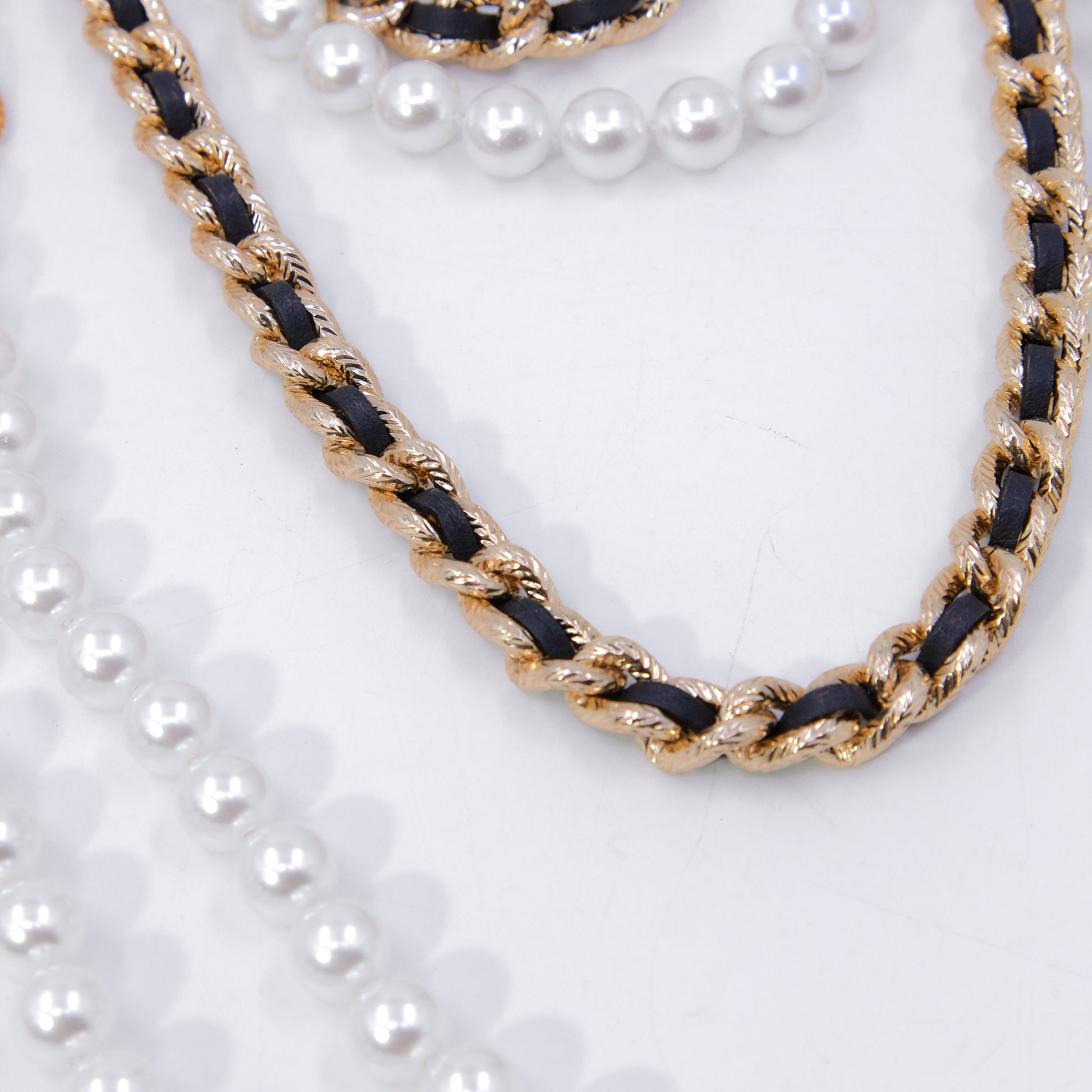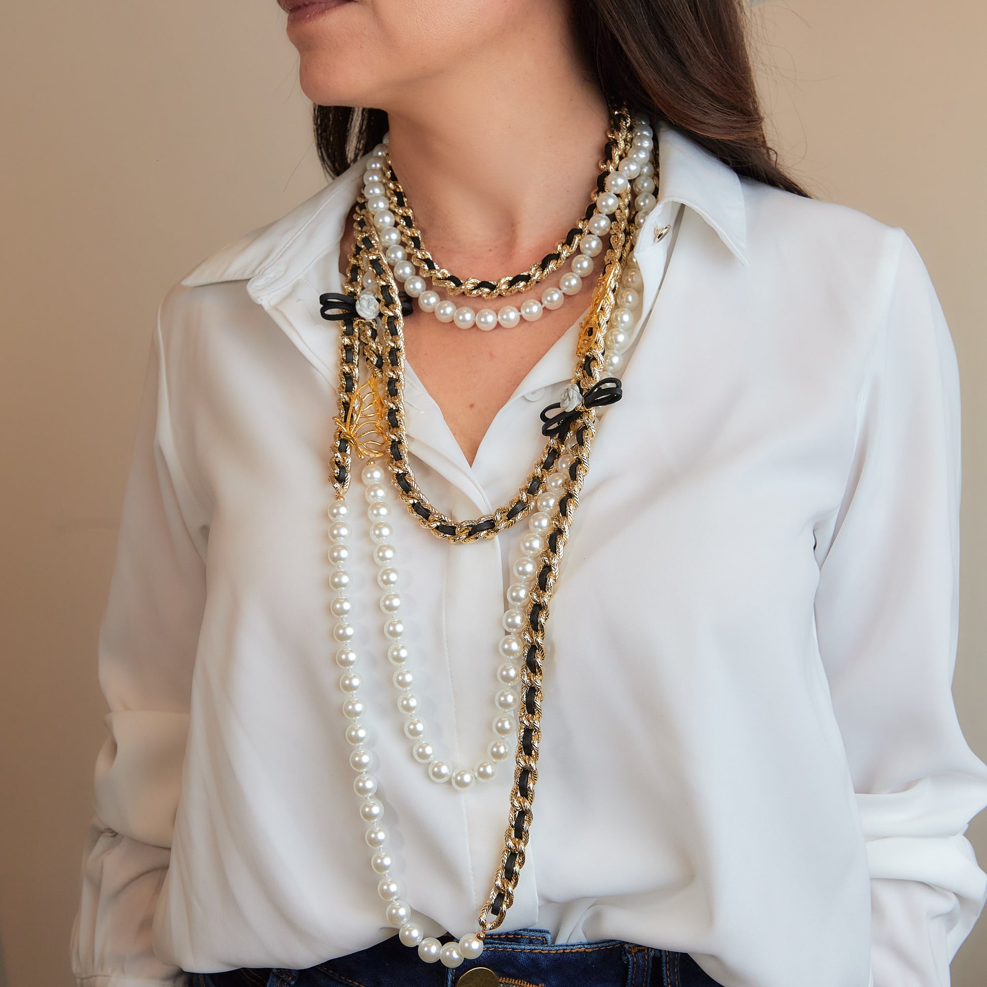 Collar layering con perla rosa Swarovski y cadena con listón
