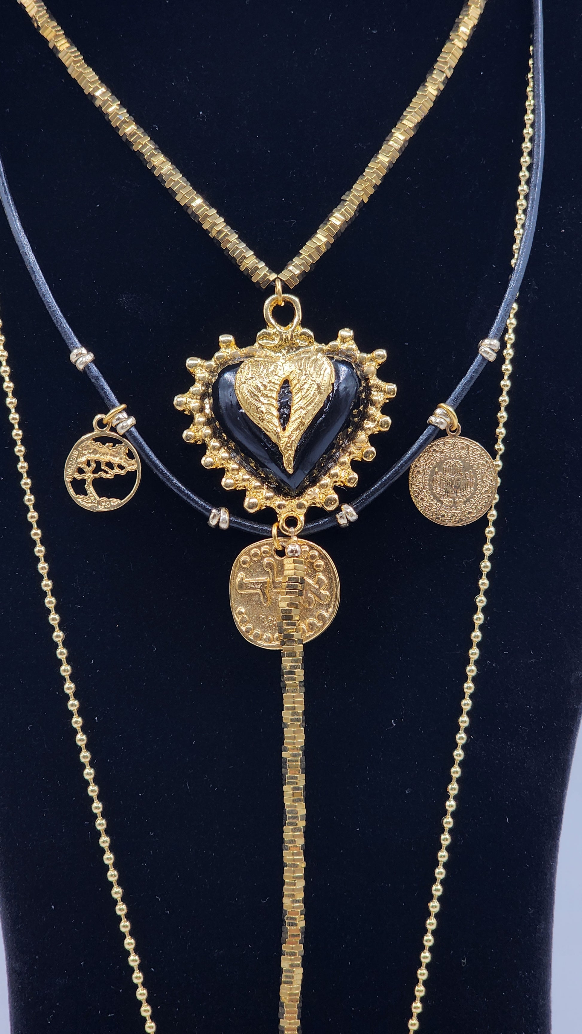 Layer(1): Collar de hematita dorada hexagonal con dije de corazón