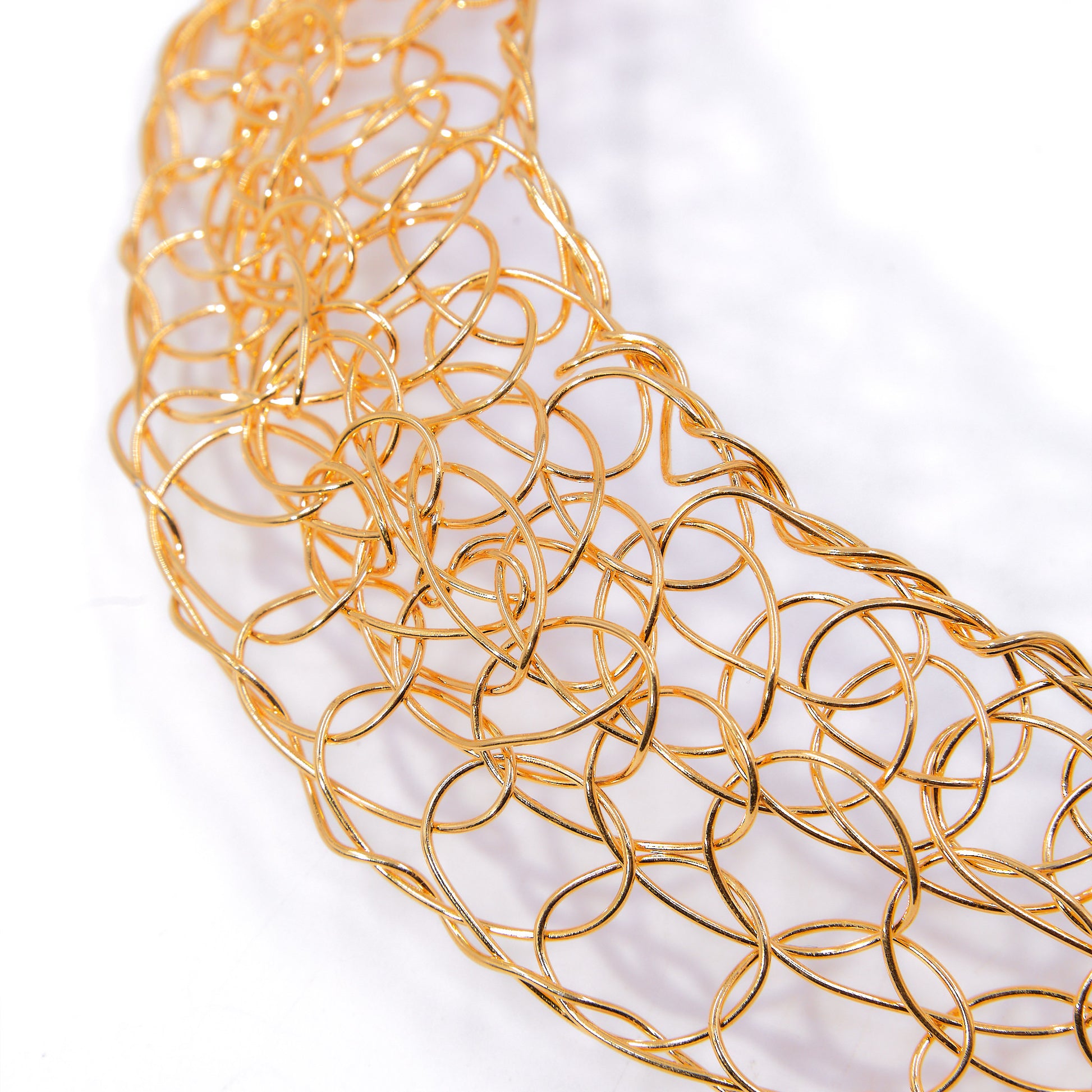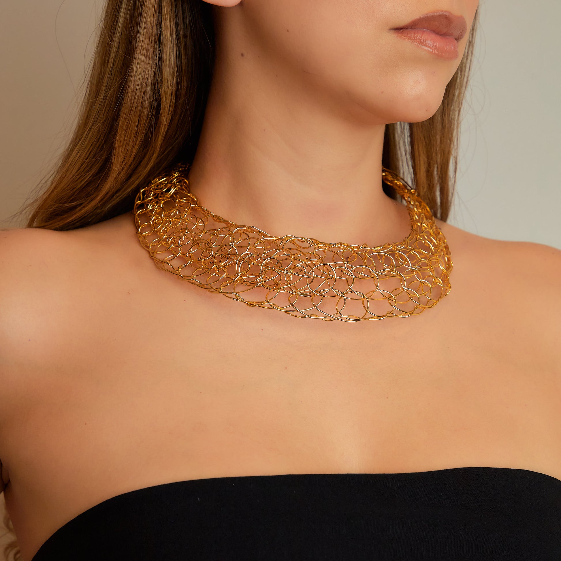 Collar tejido a mano con alambre rígido en baño de oro 14k